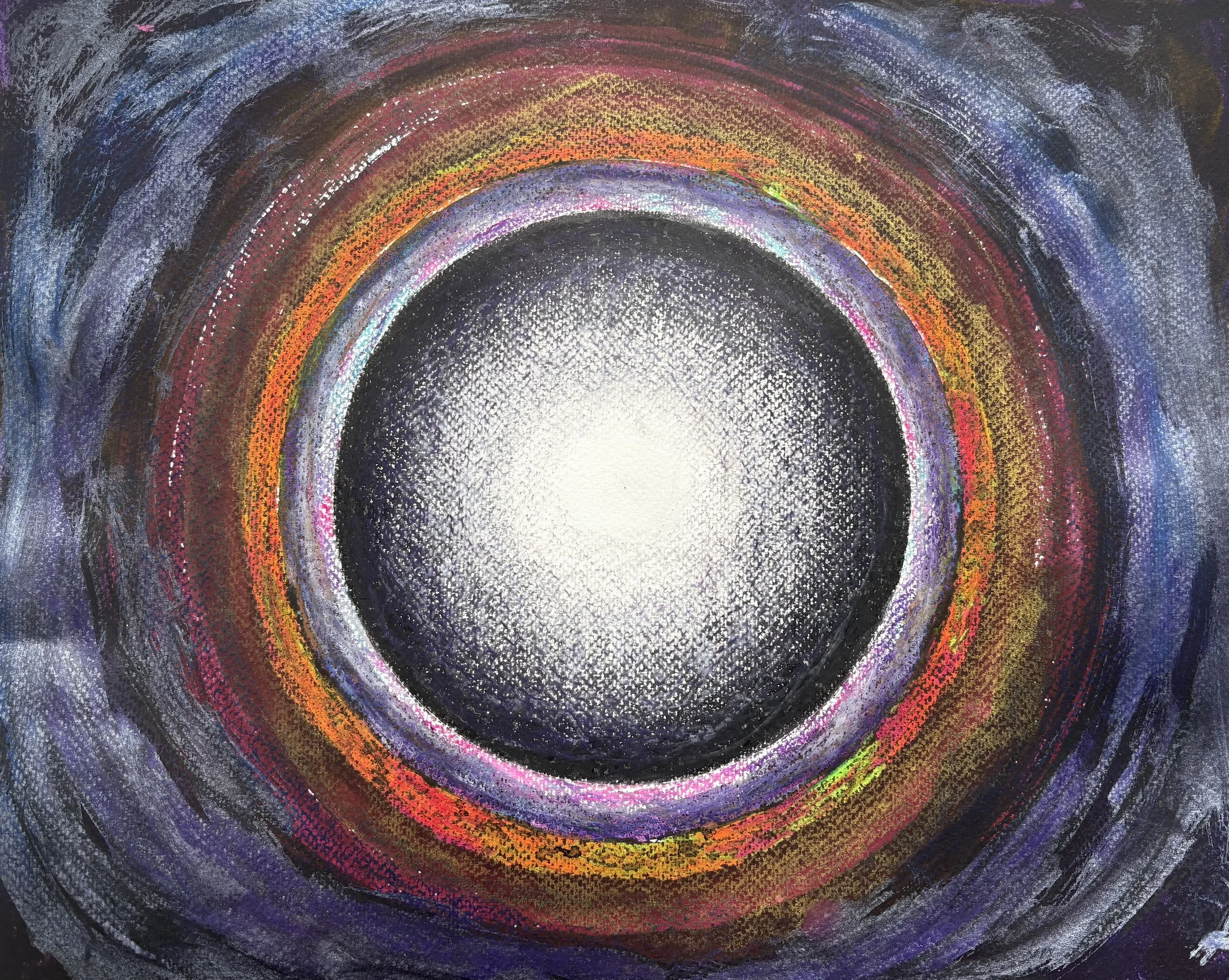 And then share, each person, something that we wish to remember from the experience. The art will go home with you. The art is mixed-media, with each participant/ artist choosing from what I have in the studio (drawing / dry media, collage, paint; paper supports, canvas too).
